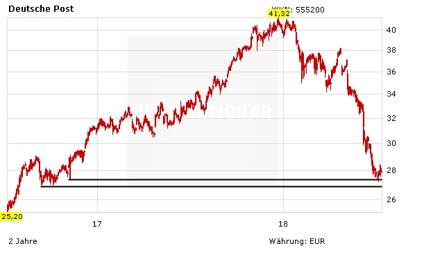 Auch DER AKTIONÄR bleibt mittel- bis langfristig positiv für die Aktie der Deutschen Post gestimmt. Aktuell drängt sich aufgrund des angeschlagenen Charts aber vorerst kein Einstieg auf. Abwarten ist weiterhin angesagt.