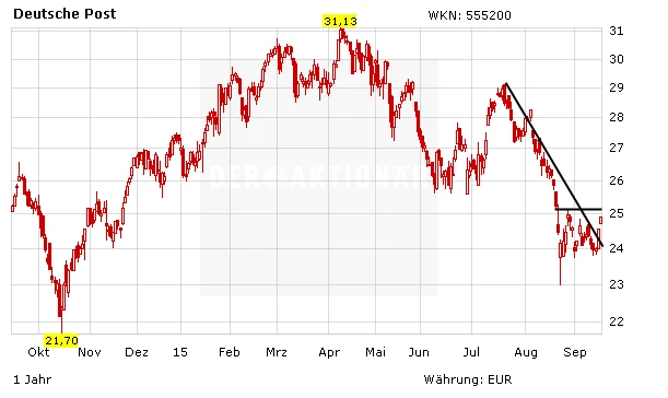 Auch DER AKTIONÄR ist für die Aktie der Deutschen Post positiv gestimmt. Mit einem 2016er-KGV von 13 und einer Dividendenrendite von 3,6 Prozent sind die DAX-Titel angesichts solider Wachstumsraten und guter Perspektiven derzeit niedrig bewertet. Der Stopp sollte bei 22,50 Euro platziert werden.
