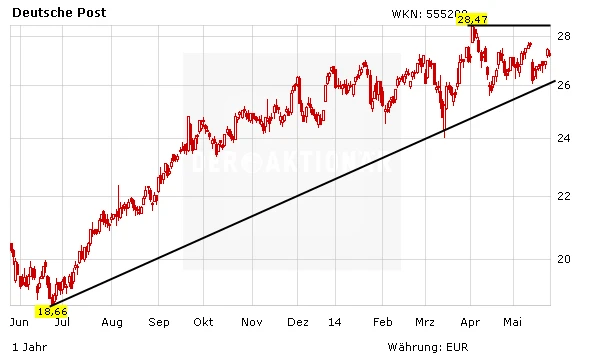 Der DAX nimmt am Mittwoch Anlauf auf die 10.000-Punkte-Marke. Die Papiere der Deutschen Post notieren dennoch tief im Minus. Grund zur Sorge müssen Anleger jedoch nicht haben. Das Minus kommt durch die Dividende von 0,80 Euro zustande, die der DAX-Konzern ausgezahlt hat.