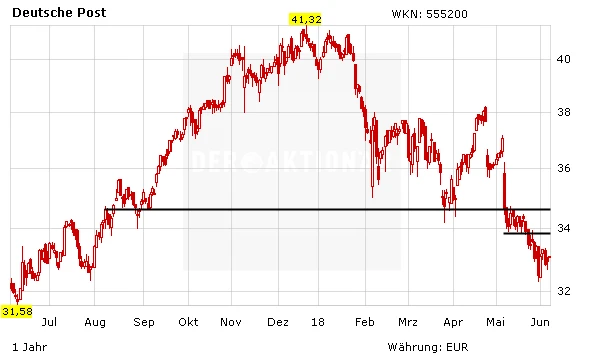 Auch DER AKTIONÄR bleibt aus fundamentaler Sicht grundsätzlich positiv für die Post-Aktie gestimmt. Die Aussichten für den weltweit sehr stark positionierten Logistikriesen bleiben gut und die Bewertung ist im Branchenvergleich immer noch günstig. Allerdings befindet sich die Aktie in einem Abwärtstrend. Daher sollten nicht investierte Anleger zunächst weiter an der Seitenlinie verharren. Wer die Aktie bereits im Depot hat, beachtet den Stoppkurs bei 31,50 Euro.
