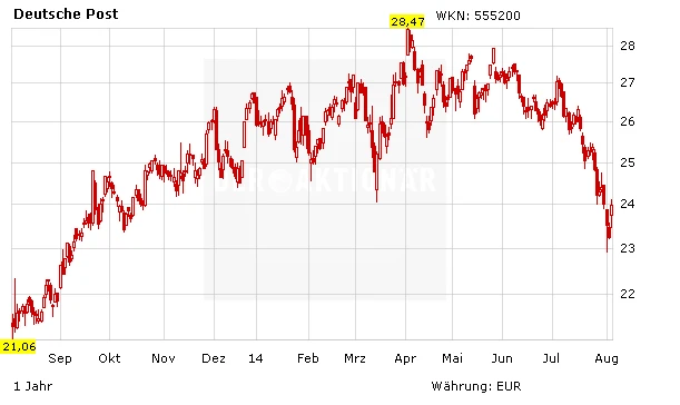 Die Investmentbank Equinet hat Deutsche Post nach Zahlen von "Reduce" auf "Hold" hochgestuft, das Kursziel aber auf 24 Euro belassen. Der Logistikkonzern habe über ein starkes zweites Quartal berichtet - mit Ergebnissen klar über seinen Erwartungen und auch über den Marktprognosen, schrieb Analyst Jochen Rothenbacher in einer Studie vom Dienstag. Das angepasste Unternehmensziel für den operativen Gewinn (EBIT) 2016 liege auf Höhe seiner Schätzungen. Optimistischer ist die DZ Bank für die DAX-Aktie. Analyst Dirk Schlamp bestätigte das „Kauf“-Rating mit einem Kursziel von 31,50 Euro. Auch Schlamp zeigte sich von dem Ergebnis positiv überrascht.