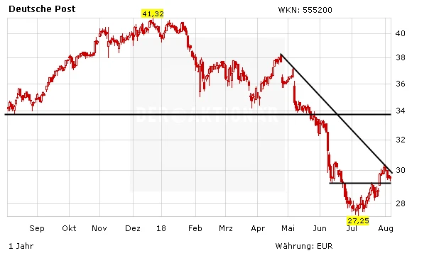Im zweiten Quartal gelang es der Post jedenfalls, den Umsatz leicht auf 15,03 Milliarden Euro zu steigern, erwartet wurden 14,97 Milliarden Euro. Auch der Nettogewinn lag trotz eines Rückgangs um 14 Prozent auf 516 Millionen Euro leicht über den Prognosen. Beim EBIT wurden die Schätzungen von 761 Millionen Euro (die Spanne lag hier von 722 bis 802 Millionen Euro) hingegen mit 747 Millionen Euro (ein Rückgang von elf Prozent) knapp verfehlt. Zur kompletten Unternehmensmeldung.
