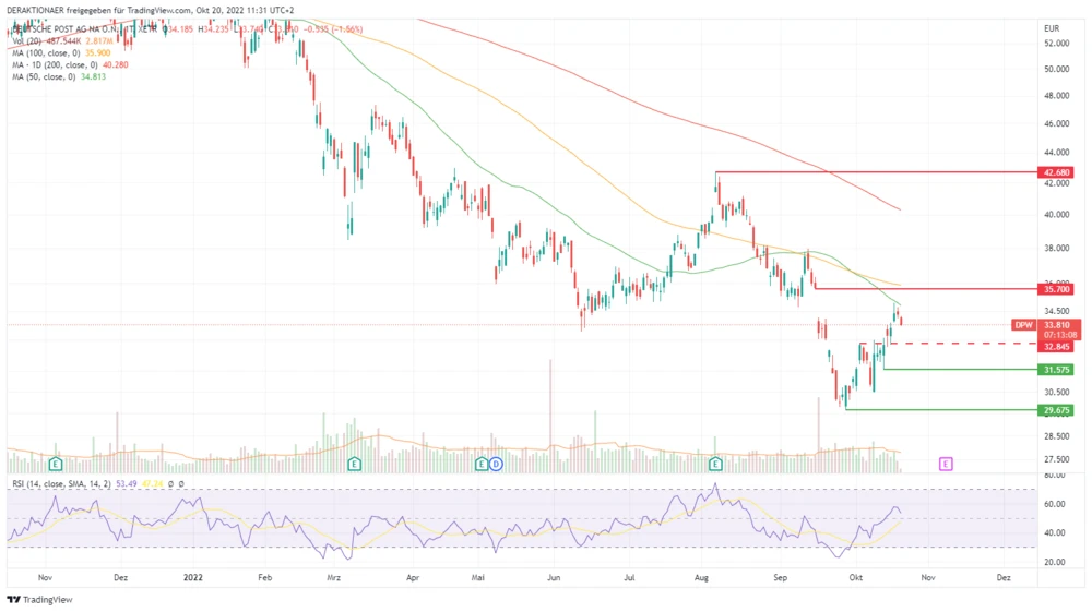 Die Stimmung der Anleger hellt sich in dieser Handelswoche kurzfristig auf. Auch die Aktie der Deutschen Post zeigte sich freundlich und setzte ihre Erholung fort. Die Bullen haben dabei ein wichtiges Signal gesendet und ein technisches Kaufsignal ausgelöst. Für Anleger sind jetzt diese Marken wichtig.