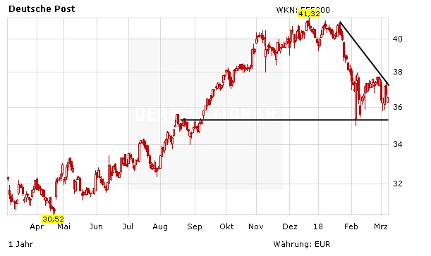 Die Deutsche Post dürfte auch in den kommenden Jahren weiter kontinuierlich wachsen. Die im Branchenvergleich immer noch günstig bewertete Aktie bleibt nach wie vor ein Kauf. Der Stopp sollte bei 31,50 Euro belassen werden.