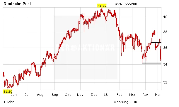 Das oberste Gebot der Stunde lautet nun: Ruhe bewahren und nichts überstürzen. Klar ist es ärgerlich, dass der Gewinn deutlich unter den Analystenprognosen lag. Dies lag aber auch an diversen Sondereffekten. Die Gesamtjahresprognose wurde aber bestätigt und weiterhin deutet eher wenig darauf hin, dass die Wachstumsstory bei der Deutschen Post bald beendet ist. Vielmehr dürfte der DAX-Konzern auch in den kommenden Monaten weiter von der florierenden Weltkonjunktur du noch über Jahre hinaus vom Paketboom im Zuge des weiter wachsenden Onlinehandels profitieren. Rein fundamental betrachtet gibt es also keinen Anlass zur Sorge.