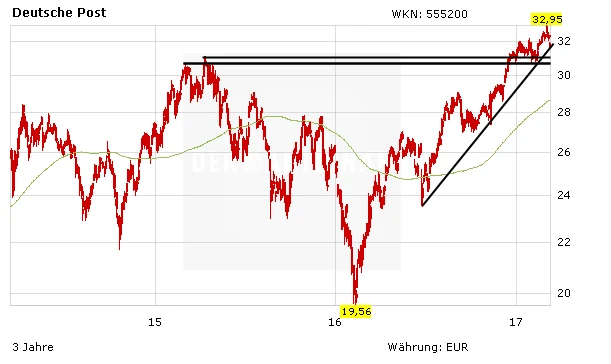 Im vorbörslichen Handel gibt die Aktie der Post knapp ein Prozent ab, was wohl daran liegt, dass das operative Ergebnis nur am unteren Ende der eigenen Zielspanne liegt. Grundsätzlich sieht es bei der Deutschen Post aber nach wie vor gut aus. Der Konzern dürfte auch im laufenden Jahr Umsatz, Gewinn und Dividende weiter anheben. Somit bleibt der DAX-Titel für konservative Anleger ein klarer Kauf (Stopp: 26,00 Euro).