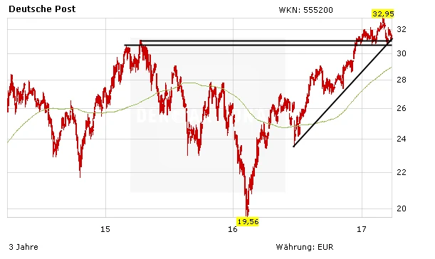 So belassen die Experten der US-Investmentbank die DAX-Titel auf ihrer vielbeachteten „Conviction Buy List“. Das Kursziel beziffert Analyst Matija Gergolet auf 38,00 Euro. Seiner Ansicht nach sei eine Neubewertung der Post-Aktie mittlerweile „überfällig“. Denn die nachhaltigen Trends im Internethandel sowie stetig steigende Barmittelzuflüsse sollten den Papieren zukünftig weiter kräftigen Rückenwind bescheren. Zudem geht Gergolet davon aus, dass die allmählich steigenden Zinsen bei der Finanzierung der Pensionslasten helfen dürften.