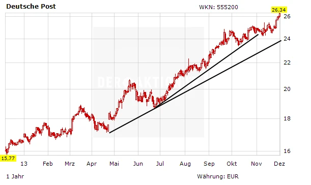 Und sie steigt immer weiter … Die Rede ist von der Aktie des Logistikriesen Deutsche Post. Das im DAX notierte Papier befindet sich seit Monaten im Aufwärtstrend. Ein Ende ist nicht abzusehen. Heute gibt es erneut gute Nachrichten – zumindest für die Aktionäre.