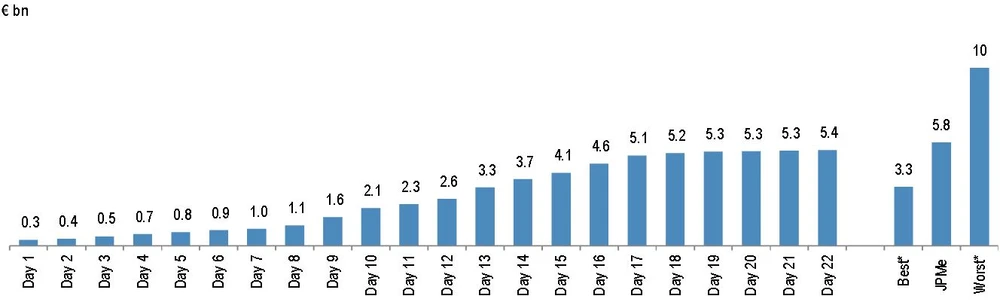 Wie J.P.Morgan in einer Studie zum letztwöchigem Auktionsverlauf schreibt, habe die Dynamik der Teilnehmer an Tag 22 weiter nachgelassen. Die Summe aller Gebote verharrte demnach bei 5,36 Milliarden Euro.