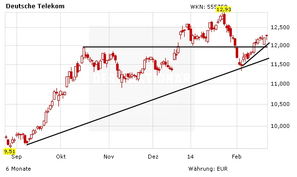 Die Aktie bleibt vorerst eine Halteposition. Vor einem Einstieg sollte die Jahreshauptversammlung am 06. März abgewartet werden, auf der genauere Aussagen zu Konzernprognosen und der Übernahme von T-Mobile US bekannt gegeben werden dürften. Bereits Investierte Anleger sichern ihre Position mit einem Stopp bei 9,50 Euro ab.