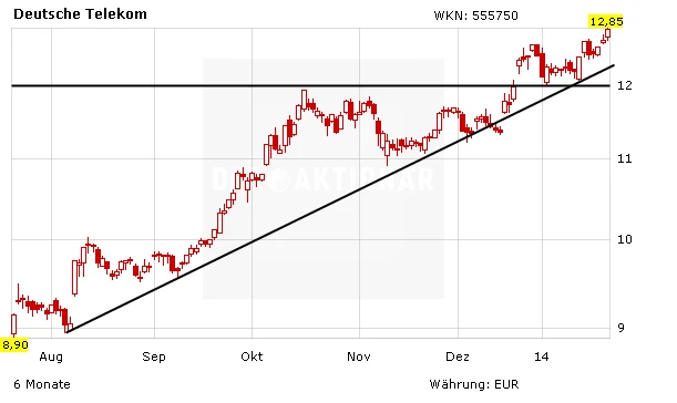 Die Deutsche Telekom führt ihre Rallye fort. Die Anteile des Telekommunikationsriesen markieren heute ein neues 52-Wochen-Hoch. Beflügelt wurde die Aktie in den letzten Tage durch Übernahmegerüchte der amerikanische Tochter T-Mobile US und dem Verkauf der Downloaddienste.