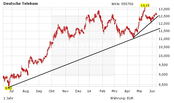 Die Aktie der Deutschen Telekom notiert derzeit unterhalb des Jahreshoch bei 13,15 Euro. Zuletzt hatten Spekulationen über die Übernahme der Tochter T-Mobile US den Kurs in die Höhe getrieben. Zudem sind die Aktionäre von der Deutschen Telekom überzeugt.