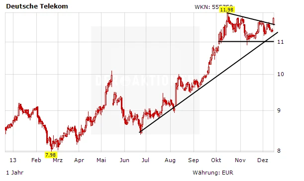 Die T-Aktie hat mit der heutigen Meldung ihre Konsolidierung beendet. Das Papier stürmt wieder Richtung des Jahreshochs. Die Aktie bleibt ein Kauf.