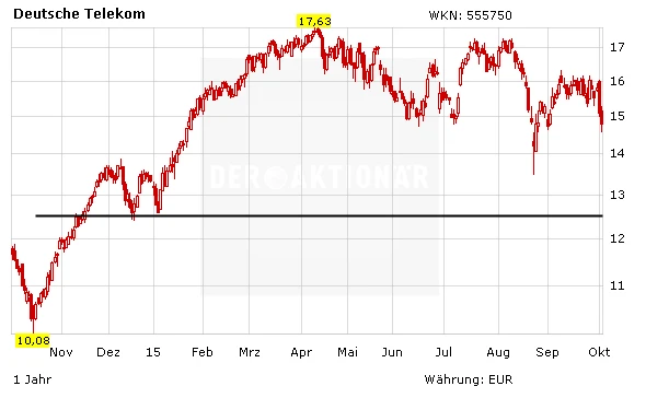 Die T-Aktie hat am Freitag mit Verlusten auf die Meldung reagiert. Kein Wunder, schließlich hat sich die US-Tochter in den vergangenen Quartalen vom Sorgenkind zum Gewinnbringer für den Bonner Mutterkonzern entwickelt. Anleger sollten nun einen kühlen Kopf bewahren und den Stopp bei 12,50 Euro im Auge behalten.