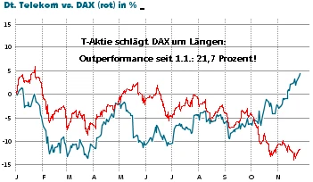 a) die Outperformance gegenüber dem DAX, die sich seit dem 1.1. auf 21,7 Prozent beläuft (inkl. Dividende) und