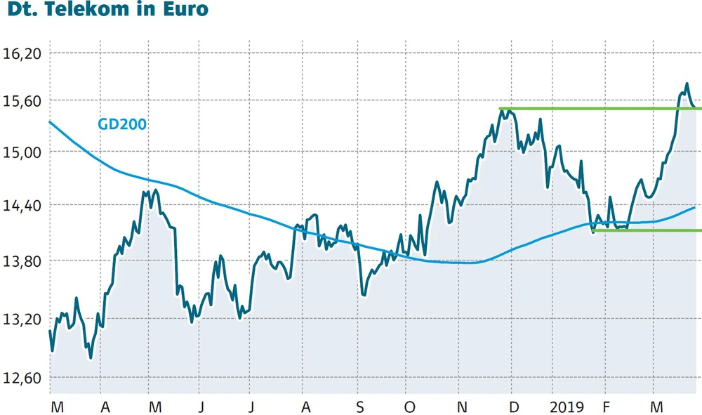Wichtiger für die Aktie ist jedoch die Umstellung auf den neuen Mobilfunkstandard 5G. Inzwischen läuft die Auktion seit einer Woche, nach 57 Runden sind von den vier Bietern Telekom, Vodafone, Telefónica und 1&1 Drillisch inzwischen Gebote von 778 Millionen Euro abgegeben worden – und ein Ende der Versteigerung ist noch nicht in Sicht. Es bleibt spannend, welche Frequenzen die Telekom sich am Ende sichert und vor allem wie und mit welchen finanziellen Folgen der Netzausbau dann umgesetzt werden kann.