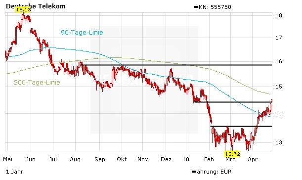 Während die Aktien von T-Mobile US und Sprint bereits deutlich anziehen, zählt auch die T-Aktie am Freitag zu den stärksten Werten im DAX. Gelingt es die US-Tochter zu fusionieren, erfolgt in den USA die Attacke auf die Marktführer Verizon und AT&T. Das würde neues Potenzial freisetzen. Auf dem aktuellen Niveau ist der DAX-Titel attraktiv bewertet. Anleger können zugreifen. Der Stopp liegt bei 12,50 Euro.