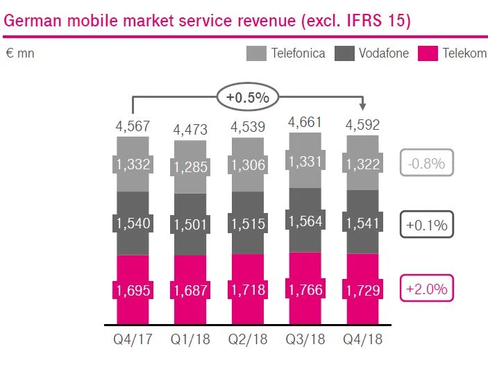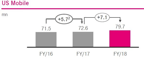 Treibende Kraft bei der operativen Entwicklung von Europas größtem Telekomkonzern bleibt weiter T-Mobile US. Die Tochter mischt unter CEO John Legere seit Jahren den US-Mobilfunkmarkt auf und trifft mit aggressiven Kampagnen und günstigen Angeboten den Nerv der Kunden. Deren Zahl erhöhte sich 2018 deutlich um 7,1 Prozent auf 79,7 Millionen.