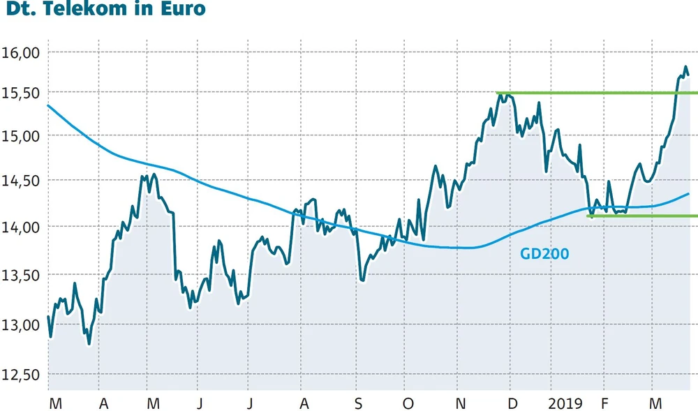 Die Telekom kämpft an vielen Fronten. Der Ausbau des 5G-Netzes in Deutschland wird teuer, die Zukunft der wachstumsstarken US-Tochter ist weiter offen. Charttechnisch sieht das Bild nach dem Anstieg der vergangenen Wochen zwar gut aus. Die hohe Bewertung und die unsicheren Aussichten sprechen aber gegen einen Neueinstieg. Die Dividendenperle bleibt eine Halteposition mit Stopp bei 12,50 Euro.