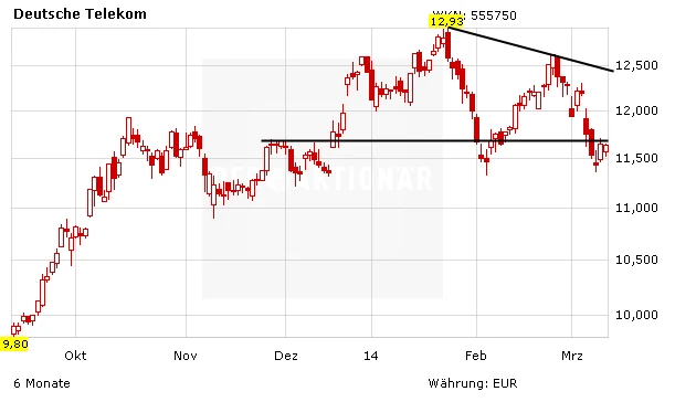 Auch wenn die T-Aktie am Mittwoch in einem schwachen Marktumfeld recht stabil zeigt, bleibt der Chart angeschlagen. Anleger beachten deswegen in jedem Fall den Stopp bei 11,00 Euro. Gelingt endlich der Verkauf der US-Tochter T-Mobile US, könnte die Aktie schnell wieder in den Fokus der Anleger rücken.