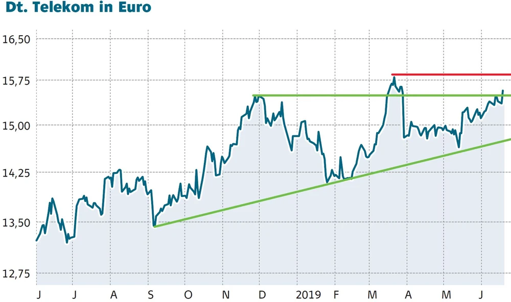 Im Vergleich zu den anderen Mobilfunkanbietern hat sich die Aktie der Deutschen Telekom zuletzt stark präsentiert. Die Mitbewerber um den neuen 5G-Mobilfunkstandard 1&1 Drillisch, Vodafone und Telefónica Deutschland notieren allesamt auf Mehrjahrestiefs. Die T-Aktie dagegen schickt sich an, ein neues Jahreshoch zu erreichen.