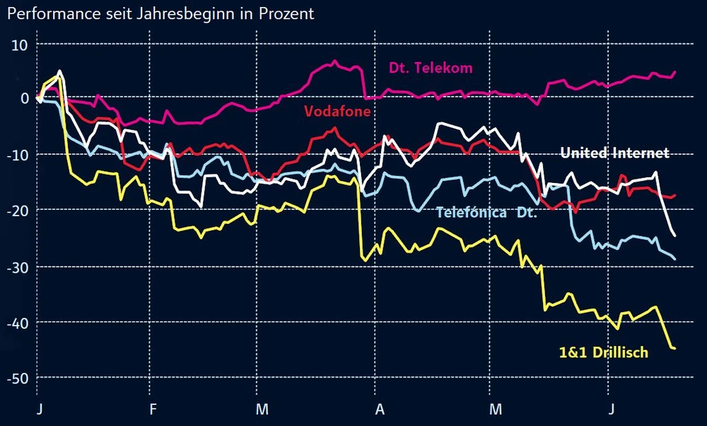 Das zeigt sich auch im Chartbild. Mit einem Plus von gut fünf Prozent seit Jahresbeginn ist die Deutsche Telekom die einzige Mobilfunkaktie in Deutschland, mit der die Anleger gutes Geld verdienen konnten. Der Vergleichschart zeigt, dass alle anderen Aktien teils deutlich unter Druck geraten sind. Da die Telekom technisch und finanziell am besten für die kommenden Herausforderungen gerüstet ist, dürfte sich diese Outperformance gegenüber den Wettbewerbern auch weiter fortsetzen.
