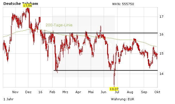 Vor allem die Entwicklung der US-Tochter spricht für eine positive Kursentwicklung. Charttechnisch ist das Bild bei der Telekom-Aktie aber nach wie vor angeschlagen. Ein neues Kaufsignal gibt es erst bei Überwinden der 200-Tage-Linie. Diese verläuft bei 15,35 Euro. Investierte Anleger bleiben an Bord.