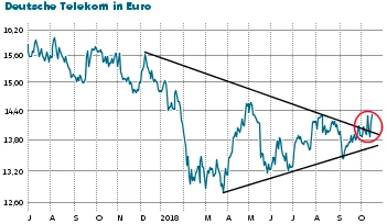 Fazit: DER AKTIONÄR hält an seiner Einschätzung für die Titel vom 8.10. fest: Der monatelange Abverkauf der Telekom-Aktien hat offenbar ein Ende gefunden. Mit dem Ausbruch aus der Dreiecksformation hat die T-Aktie zudem ein Kaufsignal generiert. Anleger auf der Suche nach einer günstigen Story sollten bei dem DAX-Titel zugreifen und den Stopp bei 12,80 Euro setzen.