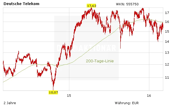Auch der Marktanteil der Bonner im deutschen Mobilfunkmarkt stieg. Zudem kletterte der Konzernumsatz 2015 auch wegen des starken Geschäfts der US-Tochter T-Mobile US um elf Prozent auf 69 Milliarden Euro, der operative Gewinn um 13 Prozent auf 20 Milliarden Euro. Netto blieb mit 3,3 Milliarden Euro elf Prozent mehr hängen als im Vorjahr. Erstmals seit drei Jahren wird die Dividende erhöht und zwar von 50 auf 55 Cent je Aktie. Damit ist die Dividendenrendite auf dem aktuellen Kursniveau mit 3,6 Prozent aus Sicht der Experten attraktiv. Trotz des vorsichtigen Ausblicks – operativ soll der Gewinn 2016 währungsbereinigt und wegen hoher Investitionen in Netze bei 21,2 Milliarden Euro liegen – ist das Unternehmen fundamental aber im Aufwind.
