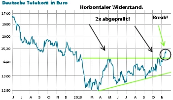 Der "rosa Riese" feiert an der Börse sein Comeback - keine Aktie im DAX hat sich seit Anfang Oktober ähnlich gut entwickelt wie die der Deutschen Telekom. Mit dem Break über die 15-Euro-Marke sollten Anleger jetzt einige wichtige Kursmarken im Auge behalten.