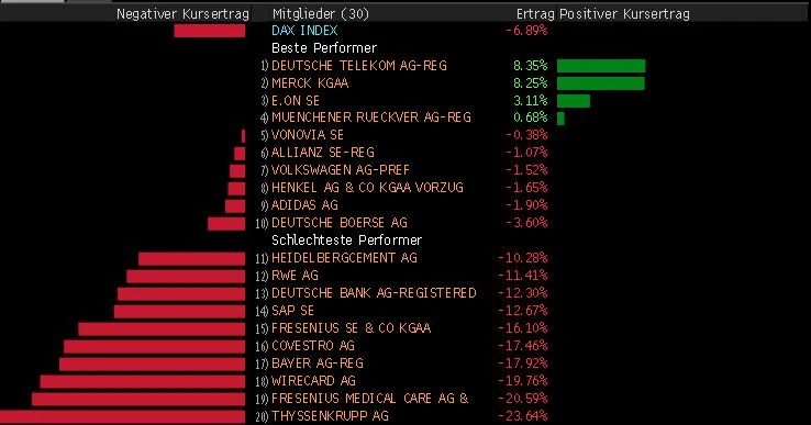Was die wenigsten Investoren wissen: Auf Sicht von sechs Wochen ist die Deutsche Telekom der Top-Shot im DAX, also in einer Zeit, in der der Leitindex massiv unter Druck stand. Die Performance der T-Aktie in dieser Zeit: +8,4%!