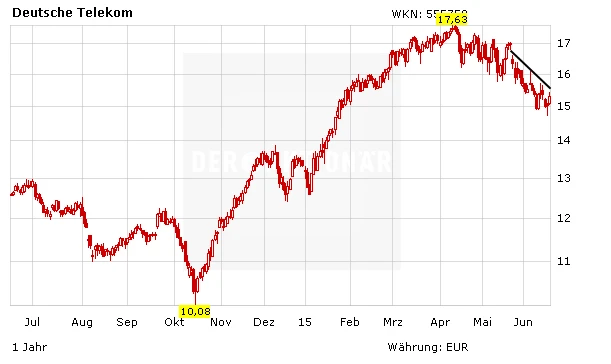 Die Anleger reagierten positiv auf die Neuigkeiten. Der Aktienkurs der Telekom-Aktie legte gegen den Markttrend zu. Der Abwärtstrend ist allerdings weiterhin intakt. Erst über 16 Euro würde sich das Chartbild aufhellen. Neuanleger warten derzeit ab.