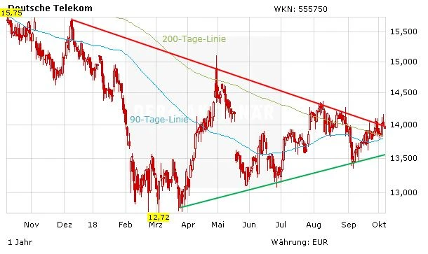 Dieser Umstand lässt sich deutlich am Chart der Deutschen Telekom ablesen. Seit Jahren kommt der DAX-Titel nicht wirklich in Fahrt. Aktuell hängt es am charttechnischen Widerstand im Bereich von 14 Euro. Kann die Aktie hier nachhaltig den Durchbruch schaffen, ist der vorherrschende Abwärtstrend gebrochen und der seit dem Frühjahr bestehende Aufwärtstrend kann weiterlaufen. Ein klares Kaufsignal.