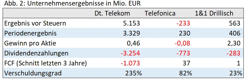 Bei einer genaueren Betrachtung der Jahresabschlüsse von Deutsche Telekom, Telefonica und Drillisch, lässt sich leicht feststellen, dass Kosten in Höhe von zwei Milliarden einen Weltkonzern wie die Deutsche Telekom weitestgehend kalt lassen. Diese Summe könnte ohne Probleme durch eine einmalige Kürzung der Dividende gezahlt werden. Zudem betrug das Periodenergebnis von 2018 mehr als das Doppelte.