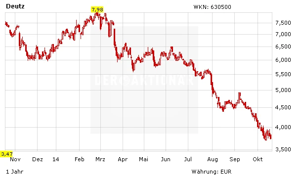 Deutz wird die bisherige Prognose für das laufende Geschäftsjahr 2014 nicht erreichen. Aus Gewährleistung und Kulanz für Motoren aus dem Segment Deutz Compact Engines, die vor allem im Jahr 2011 produziert wurden, wird gemäß neuer Erkenntnisse und Analysen in den kommenden Jahren eine signifikante finanzielle Belastung resultieren. Aber auch die generelle konjunkturelle Abschwächung macht dem Konzern zu schaffen.