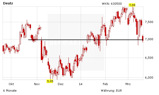 Trotz der guten Zahlen, die im Rahmen der Markterwartungen lagen und des positiven Ausblicks kommt die Deutz-Aktie am Donnerstag unter die Räder und zählt zu den größten Verlierern im SDAX. Die Commerzbank kommentierte den Ausblick auf das laufende Jahr als zu negativ. Die DZ Bank ist von der Geschäftsentwicklung im Schlussquartal enttäuscht, bestätigte aber das Kaufrating mit einem Kursziel von 8,00 Euro.