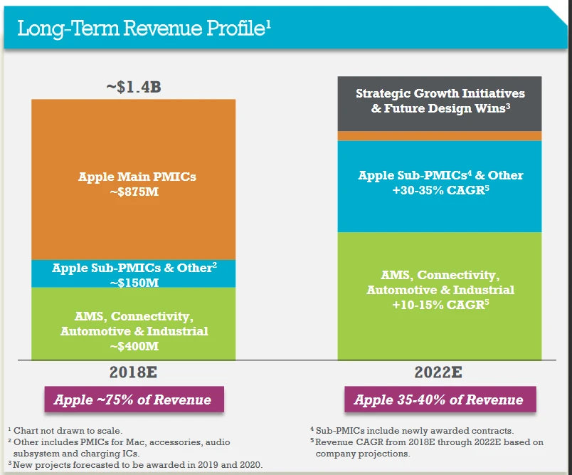 Im Rahmen der Quartalszahlen Ende Oktober gibt der Chipentwickler bekannt: „Unsere Abhängigkeit von Apple als Schlüsselkunde wird sich aufgrund des Deals (Apple beteiligte sich im Oktober bei Dialog) zwar reduzieren, wir erwarten jedoch, dass Apple in nächster Zukunft unser größter Kunde sein wird.“