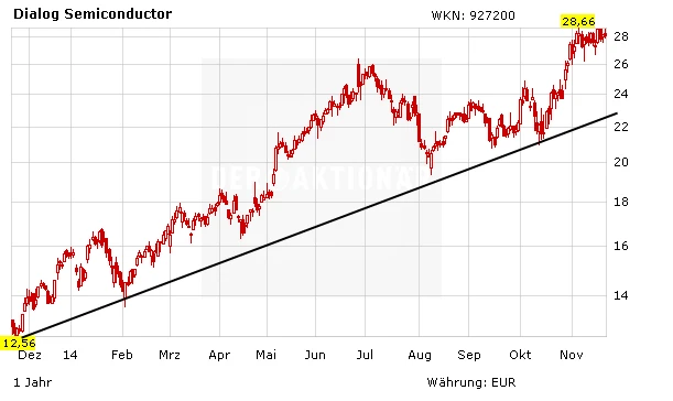 Dialog Semiconductor notiert auf einem Jahreshoch – dies dürfte weitere Käufer anlocken. Die jüngsten Zahlen haben untermauert, dass die Strategie des Konzerns, sich voll auf Apple zu konzentrieren, entgegen allen Unkenrufen voll aufgeht.