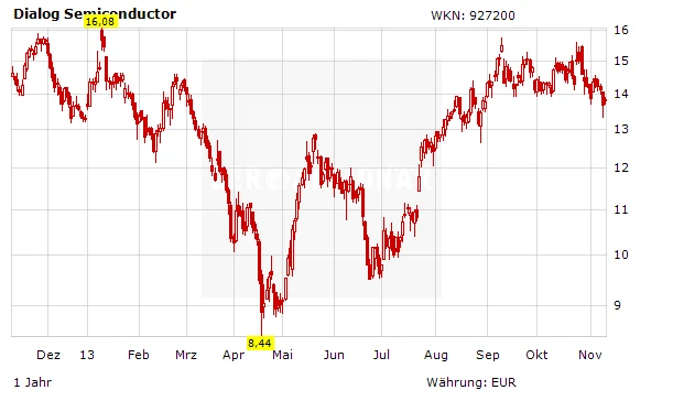 Mit dem zunehmenden Erfolg bei der Vermarktung von LED-Controller-Chips macht sich Dialog einerseits von Firmen wie Apple unabhängiger und erschließt sich einen neuen und vor allem kräftig wachsenden Zukunftsmarkt. Das Marktvolumen für Dialog verdoppelt sich durch die neue Stoßrichtung annähernd auf sechs Milliarden Dollar. Die Aktie ist mit einem KGV von 10 für 2014 ausgesprochen günstig, zumal für die nächsten Jahre Wachstumsraten jenseits von 20 Prozent avisiert sind. Kaufen!