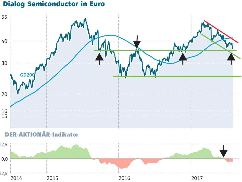 Mit den vorgelegten Quartalszahlen konnte Dialog Semiconductor wenig überzeugen. Zweifel an einem Superzyklus beim für Herbst erwarteten iPhone fördern zudem die Skepsis für die Aktie des Apple-Zulieferers. Nun wird es auch technisch brisant.