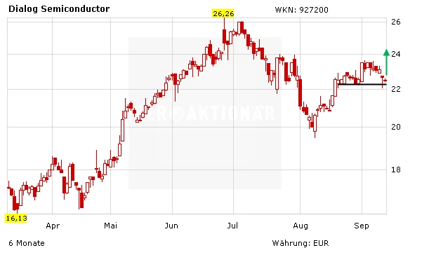 Das Analysehaus Kepler Cheuvreux ist sogar noch eine Spur optimistischer. Analyst Bernd Laux sieht die Papiere vor dem Hintergrund der neuen Produktvorstellungen von Apple sogar erst bei 30 Euro fair bewertet. Er ost davon überzeugt, dass Dialog nicht nur für das neue iPhone, sondern auch für die Apple Watch Energiemanagementkomponenten liefern werde. Das starke Wachstum dürfte sich fortsetzen und die Konsensschätzungen steigen.