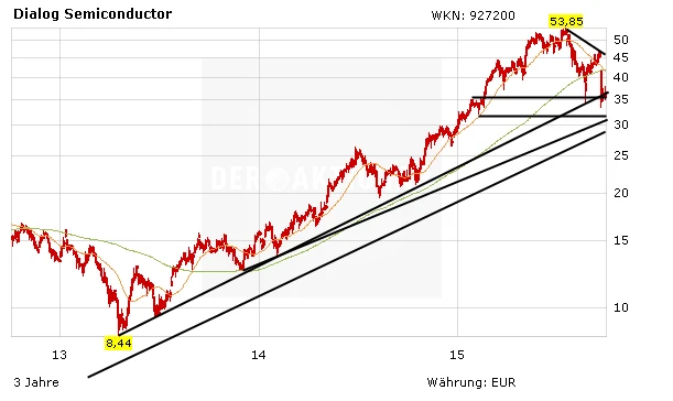Zwischenzeitlich hieß es, die US-Firma Cypress wolle mit Dialog um Atmel in einen Bieterwettstreit eintreten. Einige Anleger befürchteten, Dialog müsse noch mehr bezahlen, andere hofften, Dialog werde Atmel nicht kaufen. Nun berichteten Medien, Cypress wolle Atmel doch nicht. Sicher ist: Niemand weiß genaues. Sicher ist auch: Die Notierung von Dialog hält sich für diese Unsicherheit sehr gut, was für eine Bodenbildung nach dem jüngsten Kursrutsch spricht.