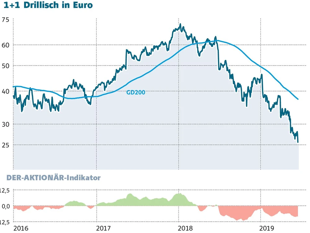 Zu den schwächsten Aktien im TSI-Ranking gehört aktuell neben der Deutschen Bank, ThyssenKrupp, Norma und Osram. Auf dem letzten Platz mit einem TSI-Wert von 0,77 Prozent liegt allerdings Drillisch. Dies ist dem langen Abwärtstrend geschuldet. Seit Anfang 2018 hat sich die Notierung des Mobilfunk-Konzerns mehr als halbiert und ein Ende des Abwärtstrends ist auch weiterhin nicht absehbar.