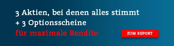Auf die richtigen Kriterien für die Auswahl kommt es an: Trendthema, Trendstärke und Top-Chartsignale. Bei den 3 identifizierten Aktien kommen diese Erfolgskriterien zusammen und werden zu einer explosiven Mischung. Allein die Aktien haben bereits ordentlich Potenzial! Wer noch mehr rausholen will, der setzt auf den passenden Optionsschein und schöpft das Maximum an Renditepotenzial aus.
