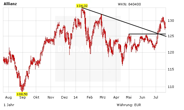 Auch DER AKTIONÄR bleibt zuversichtlich gestimmt. Die Aktie der Allianz ist mit einem KGV von 9 und einer Dividendenrendite von 4,5 Prozent immer noch einer der günstigsten Titel im DAX. Da es aktuell auch aus charttechnischer Sicht sehr gut aussieht, bleiben die Papiere des größten europäischen Versicherers ein klarer Kauf. Der Stopp sollte bei 115,00 Euro belassen werden.