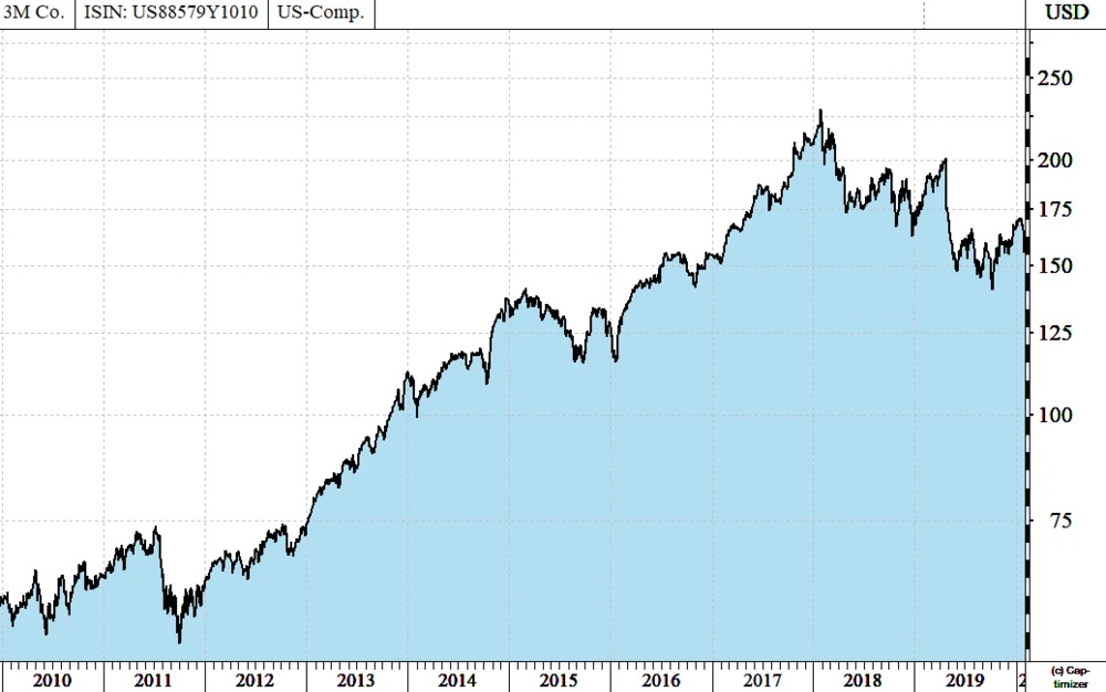 Zugegeben, Börse ist keine Einbahnstraße und niemand kann weiter steigende Kurse bei 3M garantieren. Zudem ist der Chart in gewisser Weise indikativ: Er deutet durch die Skalierung der y-Achse bereits an, dass „da noch was kommen muss“. Aber 3M hat auch in den letzten Jahren gezeigt, dass der Chart und das Unternehmen eben nicht „ausgereizt“ waren. Historisch betrachtet hat man praktisch jederzeit gute Gründe, einzusteigen.