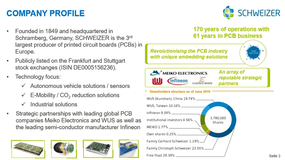 Bei der Schweizer Electronic macht Kollenda eine ähnliche Rechnung auf. Bei überproportional steigenden Umsätzen und einem Break-even im Jahr 2023 prognostiziert er bei dem Leiterplattenspezialisten eine Kursvervielfachung. Das Unternehmen startet im laufenden ersten Quartal 2020 die Produktion in seinem neuen Werk in China in der Nähe von Shanghai. „Damit wird auf Sicht von drei Jahren die Kapazität von 120 Millionen Euro jährlich auf über 400 Millionen Euro pro Jahr mehr als verdreifacht.“