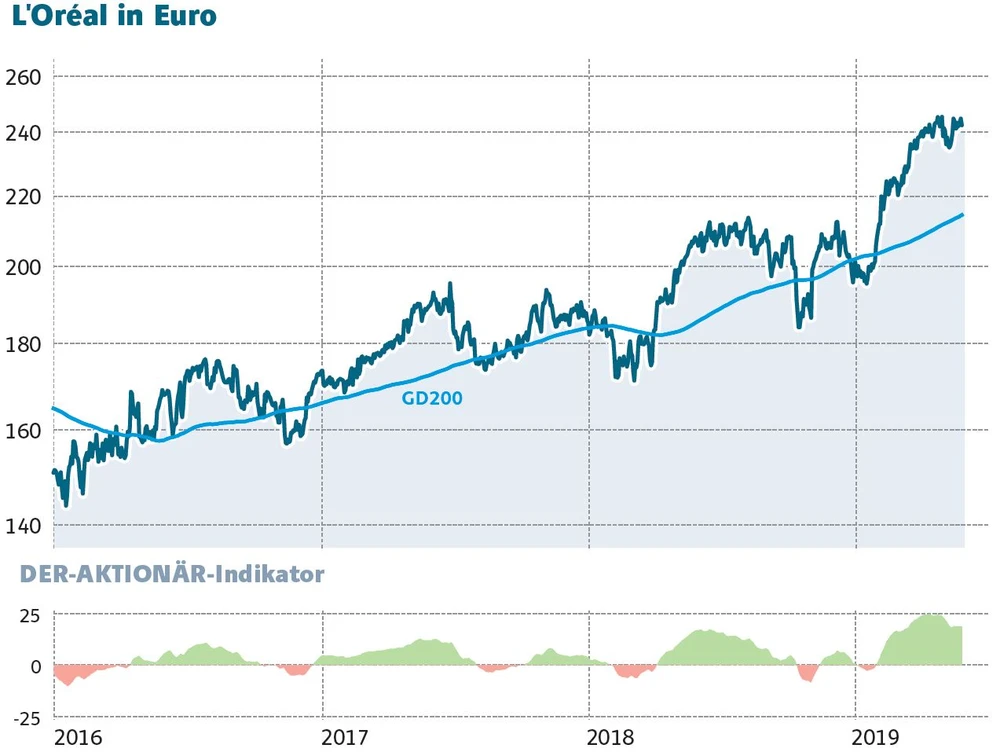 Diese fundamentale Stärke spiegelt sich auch in der Notierung von L’Oréal wieder. Die Aktie konnte erst jüngst über die Marke von 240 Euro klettern und damit ein neues Allzeithoch erklimmen. Kaum eine andere Aktie in dieser Größenordnung besitzt eine solch hohe Relative Stärke.