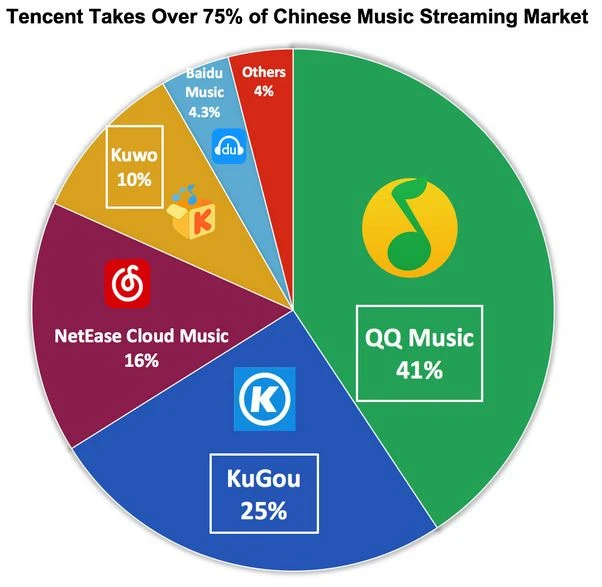 Die börsennotierte Tencent-Tochter kann nämlich nicht nur mit einer besseren Kursperformance glänzen, sondern agiert auf dem chinesischen Markt auch beinahe abgeschottet von den US-Konkurrenten. Mit den Apps QQ Music, KuGou und WeSing erreicht Tencent Music rund 800 Millionen aktive Nutzer. Bei rund 800 Millionen Chinesen, die überhaupt über einen Internetzugang verfügen, ist diese Zahl überragend. Tatsächlich kann Tencent rund 75 Prozent des chinesischen Streaming-Marktes für sich behaupten.