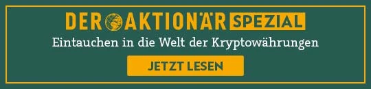 DER AKTIONÄR hat dem hochspannenden Thema der Kryptowährungen nun eine Spezialausgabe gewidmet. Tauchen Sie ein in die Welt der Kryptowährungen und profitieren Sie von exklusiven Interviews mit absoluten Krypto-Experten sowie Hintergrundinformationen zu den Top-Coins und derzeitigen Megatrends der Branche. Holen Sie sich jetzt das große AKTIONÄR-Spezialheft und erfahren Sie alles, was Sie zu Bitcoin & Co wissen müssen.